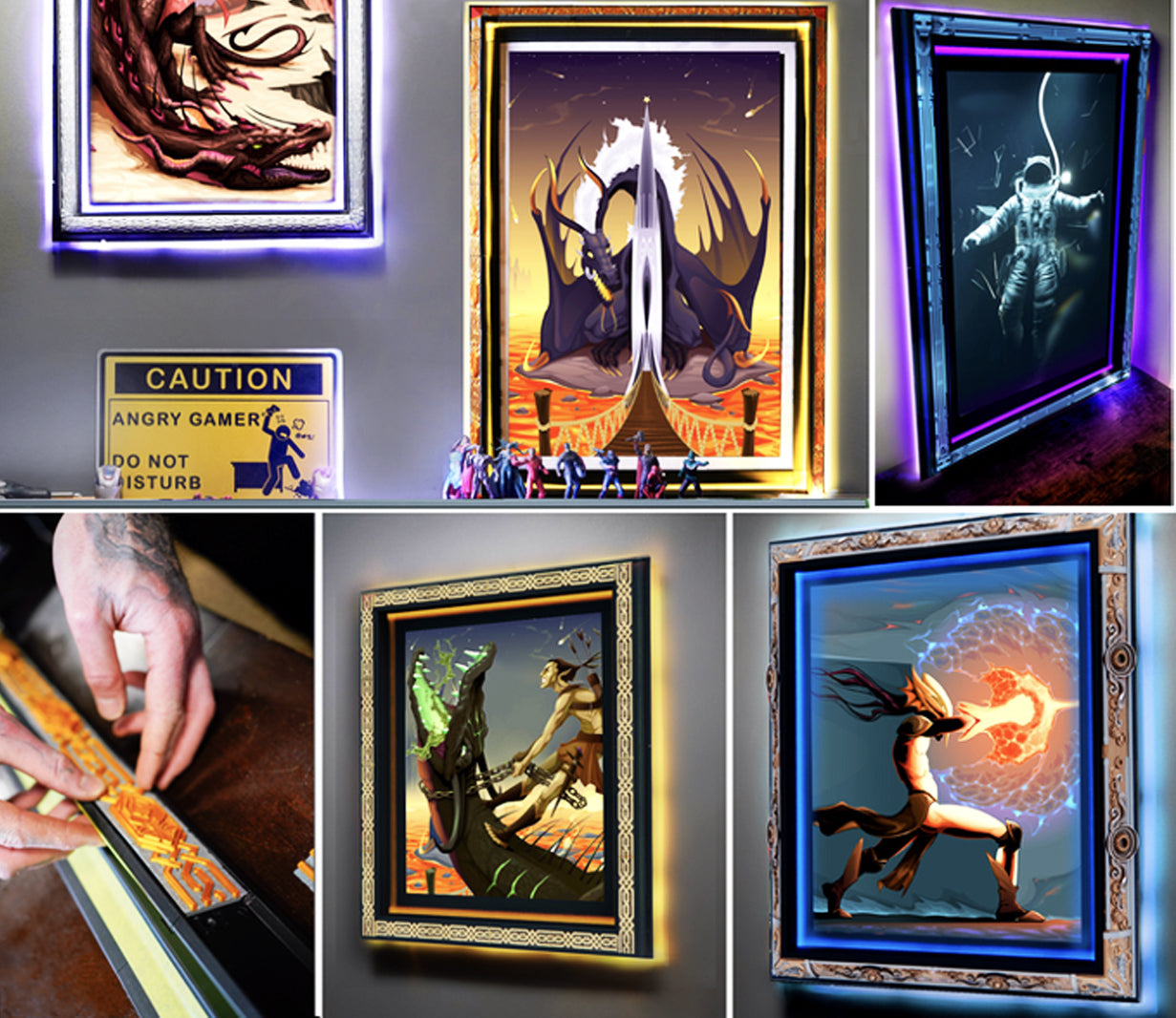 - Minimalist – A sleek, refined design with a thinner bezel, keeping the focus on your artwork while still leaving just enough room for themed accents. Perfect for a clean, modern look that enhances without overpowering.