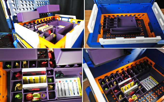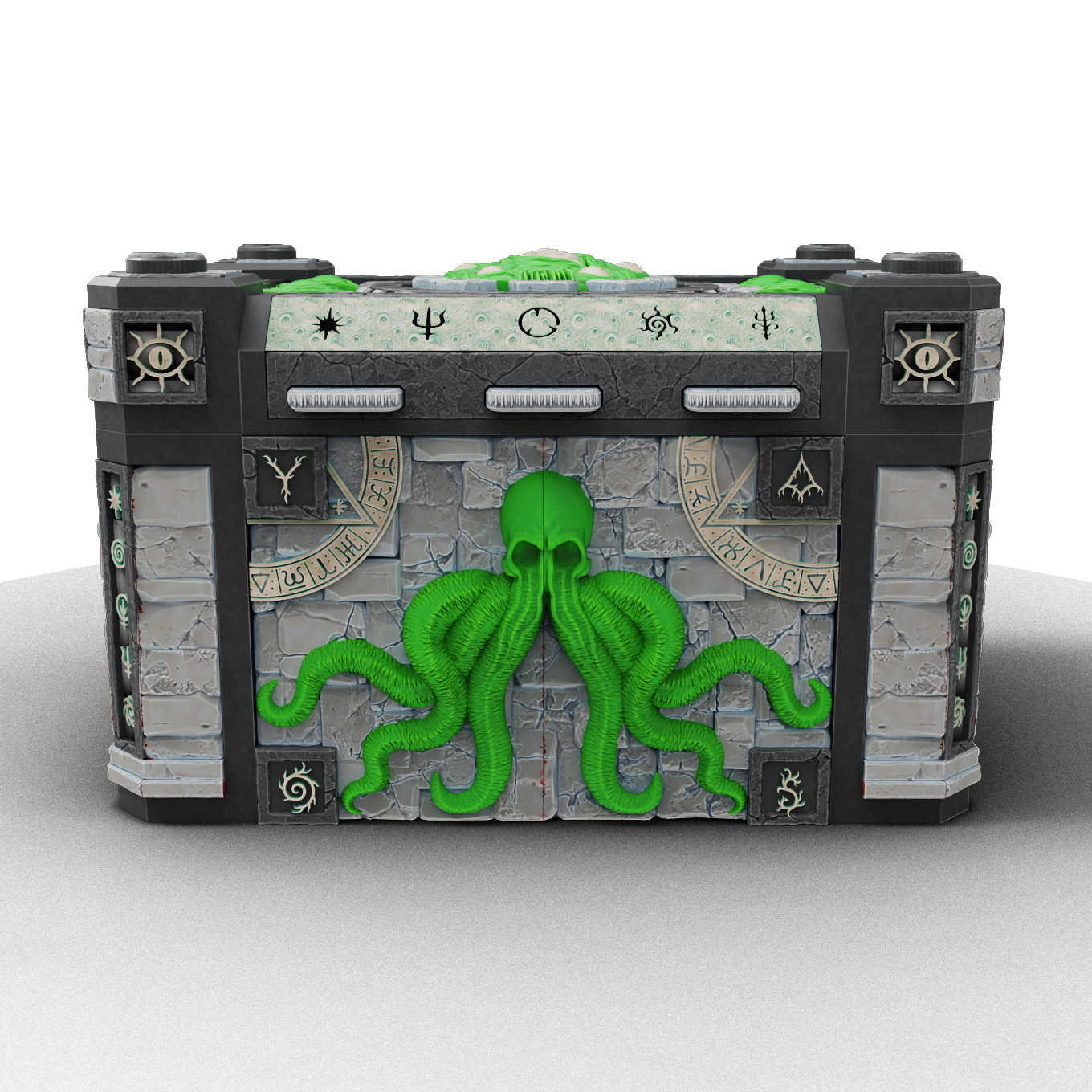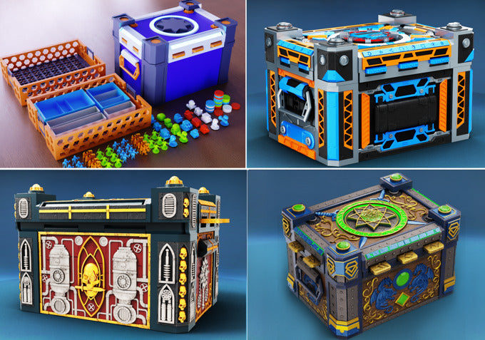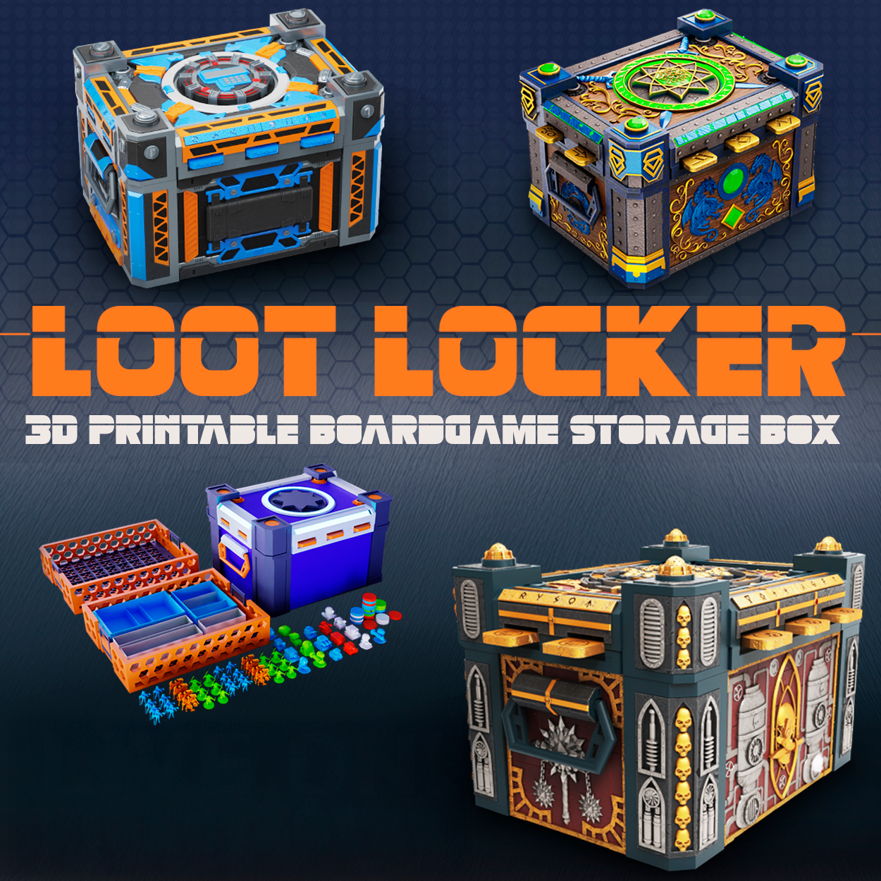 Inside every Loot Locker is a tray designed around a grid pattern that accepts interchangeable inserts. These Inserts can be printed in different shapes and sizes to hold cards, tokens, dice, pens, miniatures, and more. The system is flexible enough to handle nearly any board game setup, while also being efficient to print. One tray gives you countless ways to organize and expand, adapting to whatever you need to store.