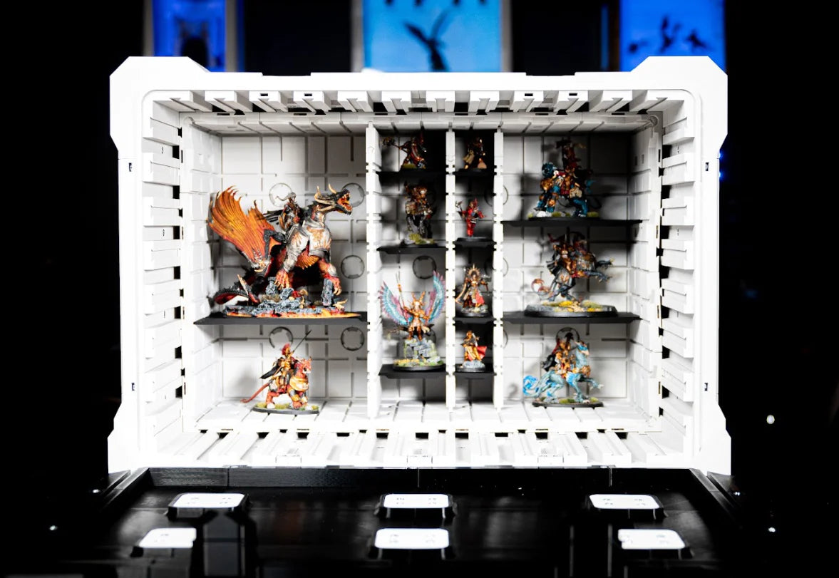 Each size uses the same modular drawer system that can be 100% customized to fit and store whatever you want, however you want. This includes but is not limited to, Miniatures, Board Games, Painting Kits, Gaming Accessories and really all hobbyist activities!