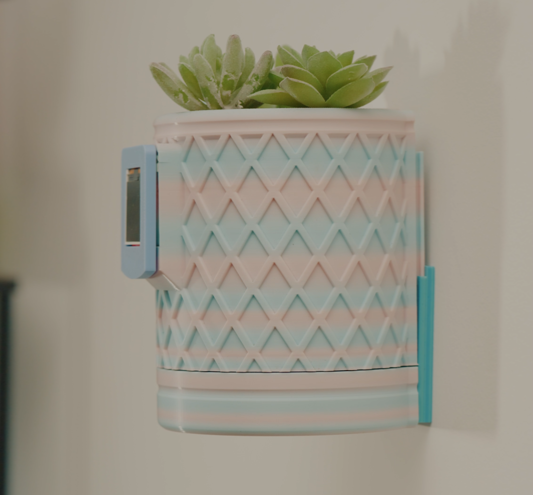 A 3D-printable wall-mounted smart planter that waters itself using a built-in moisture sensor and auto-refill system. A tiny screen shows a cute caterpillar that reacts to the soil level — happy when watered, sad when low, and a dramatic RIP tombstone when it’s bone dry. Prints in PLA, easy to assemble, perfect for anyone who loves plants but forgets they need water to live.